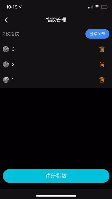 4、方便快捷的指纹管理操作,指纹管理中心设置了删除全部和单独删除指纹的快捷删除工具;
