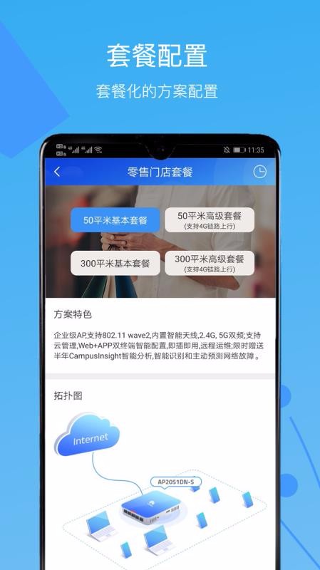 4、展示详细丰富的方案信息,每一种套餐方案信息内容中都展示了方案特色以及拓补图内容;