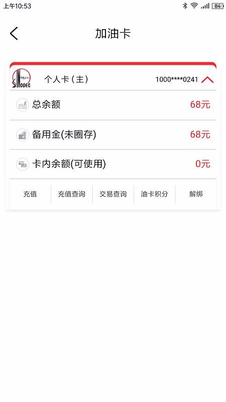 5、绑定加油卡,随时查看加油卡信息,及时选择加油卡充值缴费