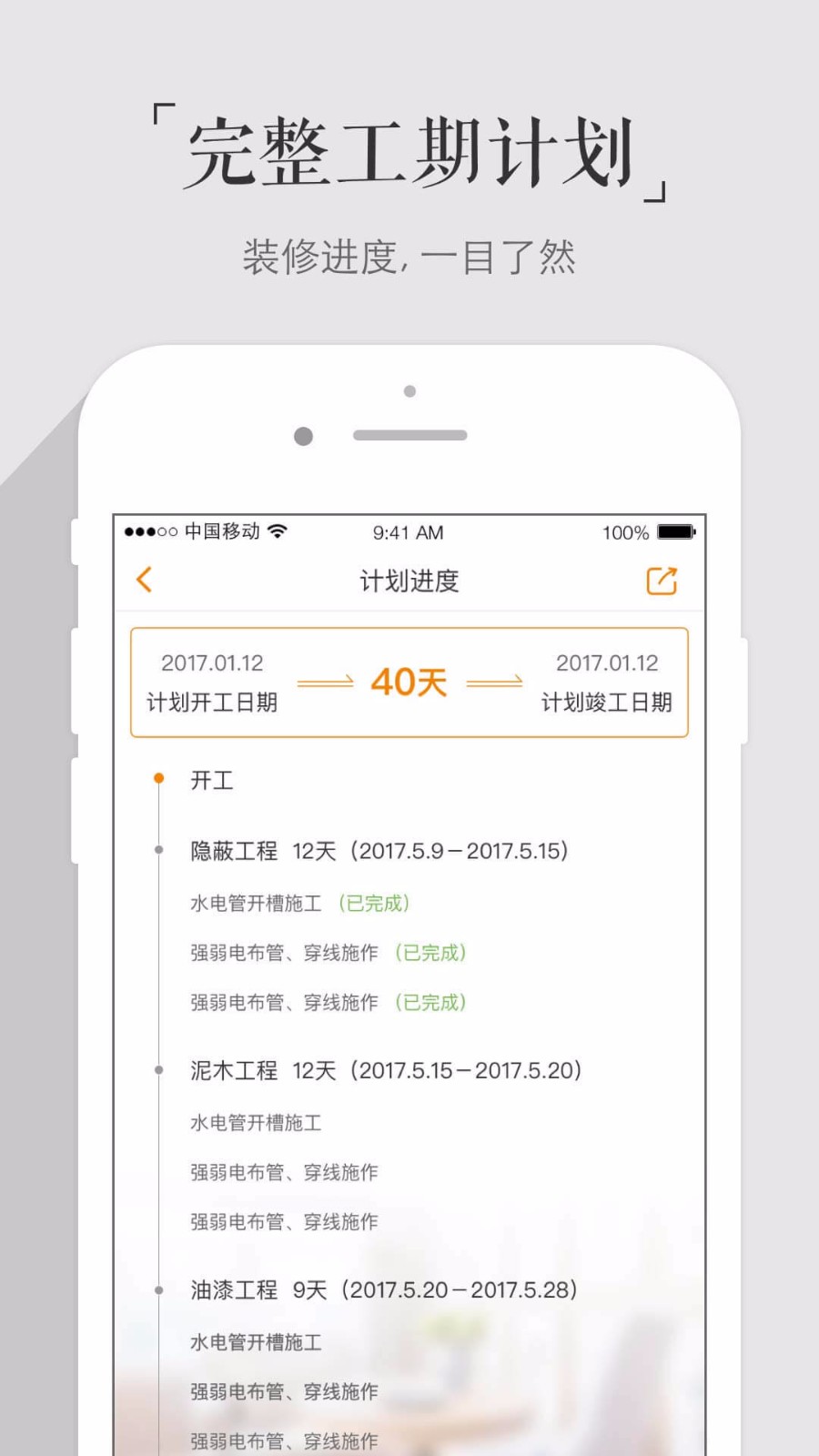 3、打开计划进度,能够看到具体的施工进度详情和完成情况