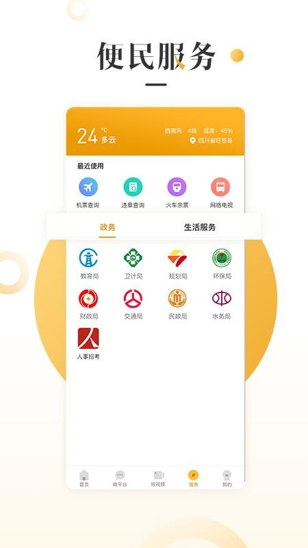 旺苍融媒app是一款本地新闻资讯服务手机软件,这里每天都有大量的本地新闻资讯,并且资讯的内容十分的丰富,覆盖了各个领域的内容,用户随时都可以通过手机在线进行观看,让你足不出户就可以详细的了解到自己身边的大小事,同时用户还可以在这里对自己感兴趣的内容进行关注,能够让你实时了解关注的最新动态;还有很多的视频、直播、电台等等,更为当地的用户提供了大量的便民服务,有医疗、教育、交通、生活得到,用户可以根据自己的需求在这里自由的选择,能够给你带来更叫方便的城市生活。