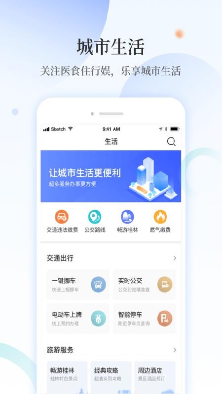 甲天下app是一款为桂林市民提供各种生活和政府服务的软件,让市民们能够享受到多种服务内容,体验便捷生活;应用涵盖了从政务到生活服务再到城市建设等多种服务内容,用户可以在这里快速办理各种业务,拥有更加轻松的生活体验;用户通过软件能够找到各种生活服务,为自己的生活带来更多便利,轻松搞定自己的吃住行,提高生活质量;在这里,用户还可以在线上报各种城市不文明信息,帮助政府一起打造文明社会,共享美好生活;快下载这款软件试试吧,方便快捷的办理各种政务,让自己能够拥有更轻松的城市生活。