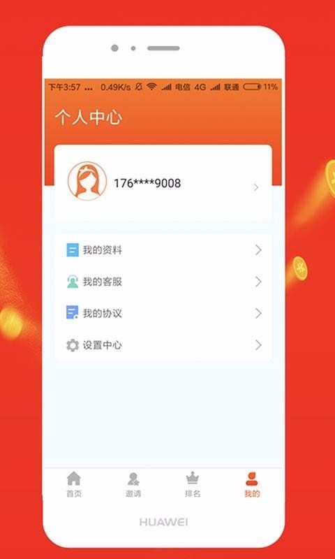 6、在个人中心管理资料、协议和客服,给你更全面的帮助