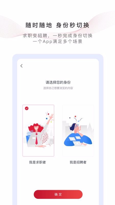 2、设计了清晰的身份图标,求职者和招聘者拥有两种不同的清晰分辨选择图标;
