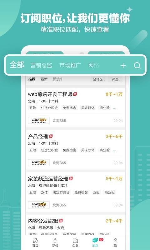 4、提供职位订阅功能,用户可以选择自己的求职意向,快速查看各职位信息;