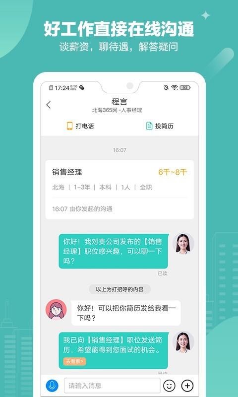 6、在这里,用户能够和招聘者进行语音交流,还可以快速的打电话;