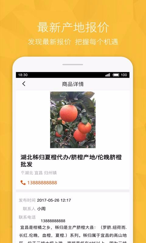5、通过电话可以直接在线联系生产基地的经纪人或农户;
