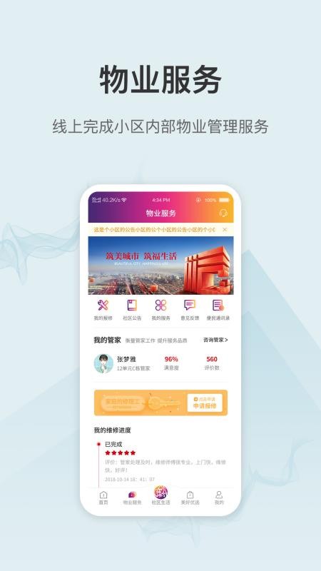 美好生活家园是一款优质的服务平台,用户在平台里可以得到各种生活服务,实时的解决你的生活需求,让用户可以快速的进行使用,感受到不一样的生活乐趣,实时的保障居民的生活问题,让居民更好的使用;这款软件采用移动互联网的服务方式,把所有的服务方式全部展示在平台里,根据自己的需求就可以快速的进行选择,找到你需要的服务功能,随时随地都可以快速的解决你的生活需求;平台还提供了社区物业服务,在线就可以快速的进行查询,清楚的了解自己的物业信息,让你通过平台就能够快速的进行缴费,节省用户更多的时间,让用户能够得到更多的帮助。