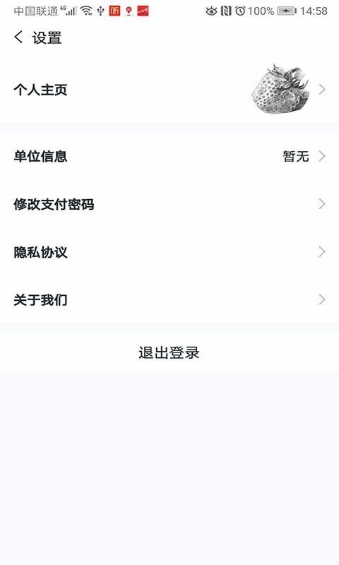 2、点击设置,选择单位信息、修改支付密码、隐私协议等