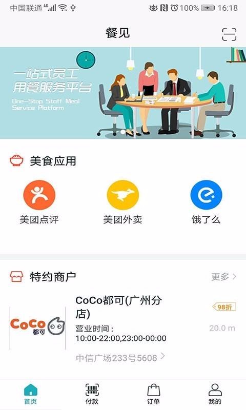 餐见是专门为企业提供员工用餐服务的软件,员工可以在该平台中选择美食店铺进行下单,也可以前往线下进行消费,可以直接使用该软件进行支付,企业可以为员工提供福利账户,直接使用该账户进行付款;员工也可以进行现金账户的充值,充值的金额不限,在线消费后,还可以查看支出的明细;自动根据定位为你推荐附近的入驻商家,自行根据距离、星级、美食类型等进行筛选,每一个商家都为你显示了营业时间、折扣消息、距离、详细地址等;在线还可以选择美团点评、美团外卖、饿了么等美食应用,在线即可进入相应的平台进行下单。
