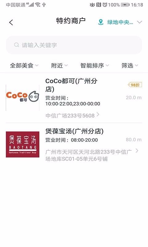6、提供了各种特约商户,在线即可查看商户的具体位置信息和距离;