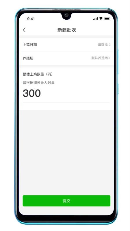 6、支持新建批次,用户可以快速的选择上鸡日期和养殖场新建养殖批次;