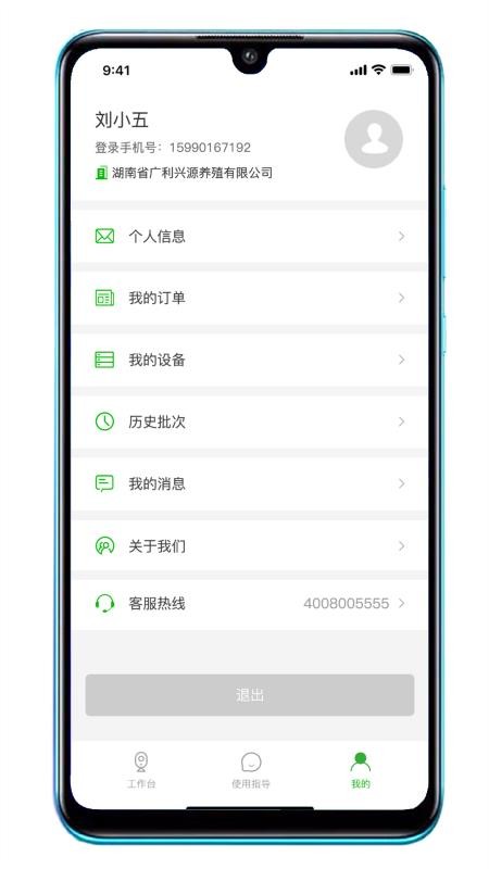 5、打开个人中心,查看自己的订单、设备和批次信息,查看我的消息内容