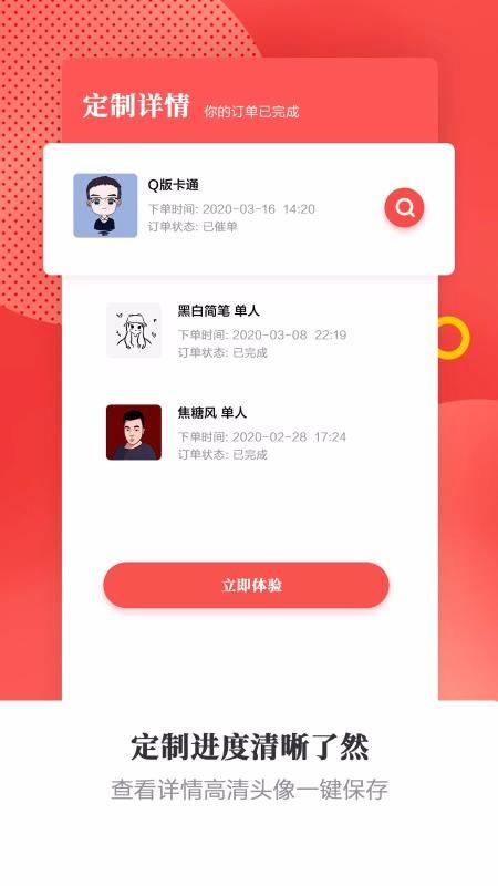 4、定制进度清晰了然,让你实时掌握定制的全过程,及时查看头像;