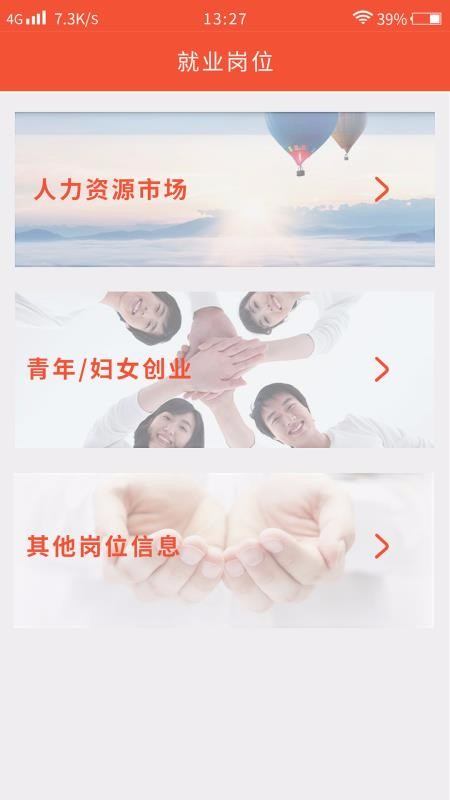 5、点击就业岗位,选择人力资源市场、青年创业、妇女创业等