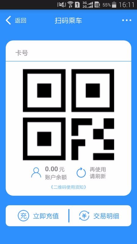 4、乘车码可显示账户余额,方便及时充值,一个码使用一次,刷新可再次使用;