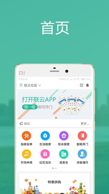 3、提供智能开门功能,用户能够通过应用快速的开启小区的大门,轻松进出;