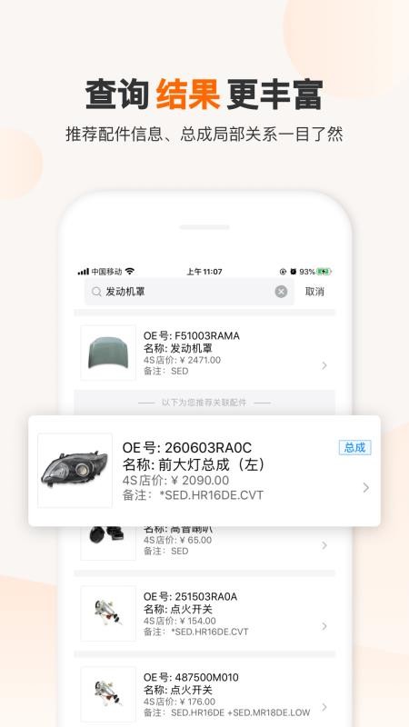 3、点击查询,可以快速的找到各种配件信息,更好的购买