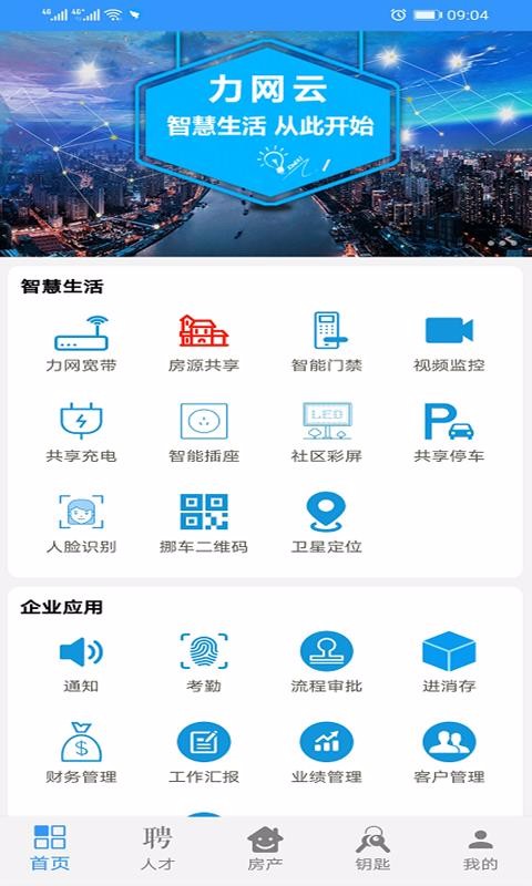 力网云app结合生活与办公服务为一体,为用户提供力网宽带、智能门禁以及企业应用中的考勤管理和进销存管理等智慧管理应用;首页将两种服务应用进行了划分,想要寻找生活服务就能在智慧生活中寻找,想要找到企业使用的服务项目能查看企业栏中的应用;在智慧生活服务栏中可以进入房源共享中心,查看里面租房或卖房的丰富资源内容,可以在线查找自己想要租赁的房源,还能将自己的房源共享到平台;另外还能通过视频监控功能看到小区中相关公共视频中展示的内容,支持在里面查看某一天监控捕捉到的画面,用来寻找相关的人物或相关事件。