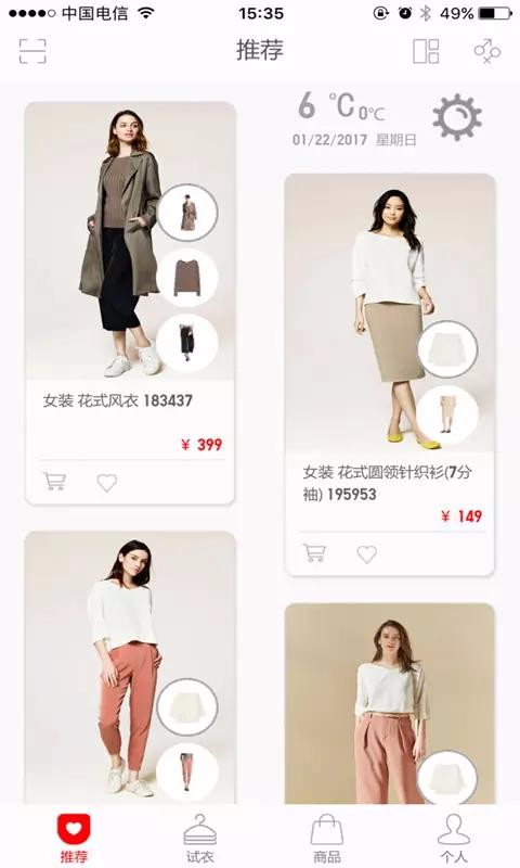 5、推荐搭配,根据你的体型数据为你智能搭配服装,提高选择性;