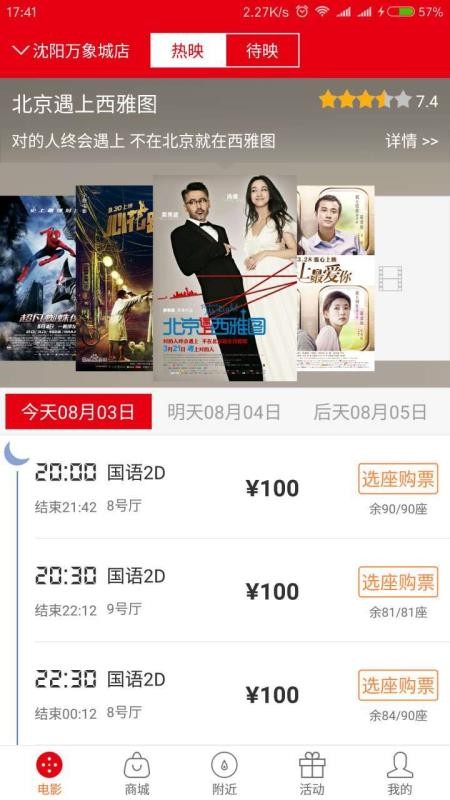 4、支持在线购票选座功能,你可以通过本款软件在线选择自己喜欢的位置进行购买电影票;