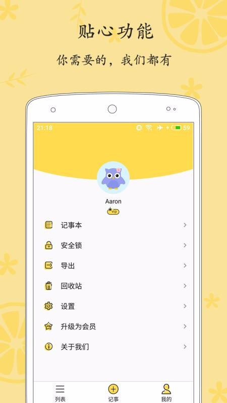 1、提供了多种类型的记事本,任意设置封面,还支持管理多个记事本;