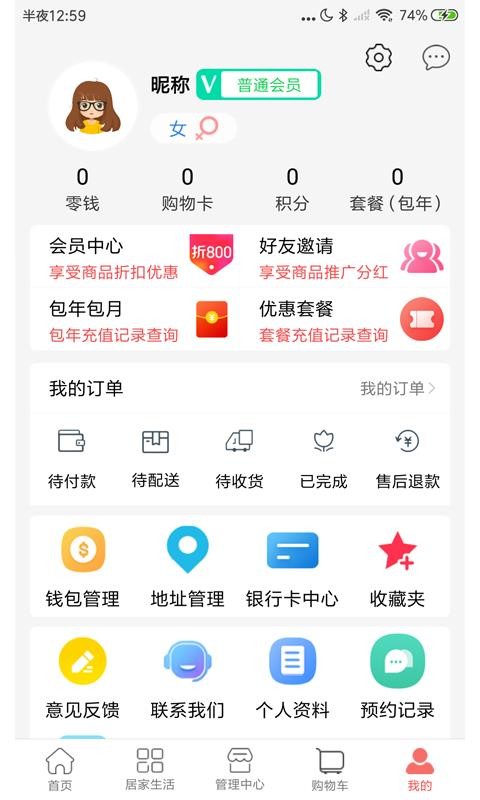 4、进入个人中心,查看自己的各种订单信息,便捷管理自己的钱包和地址