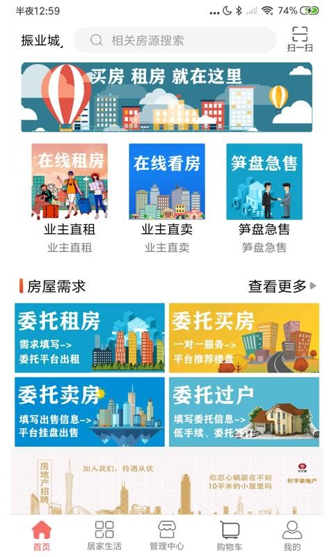 2、查看首页中显示的各种业主房屋和房屋需求功能,快速的租房买房