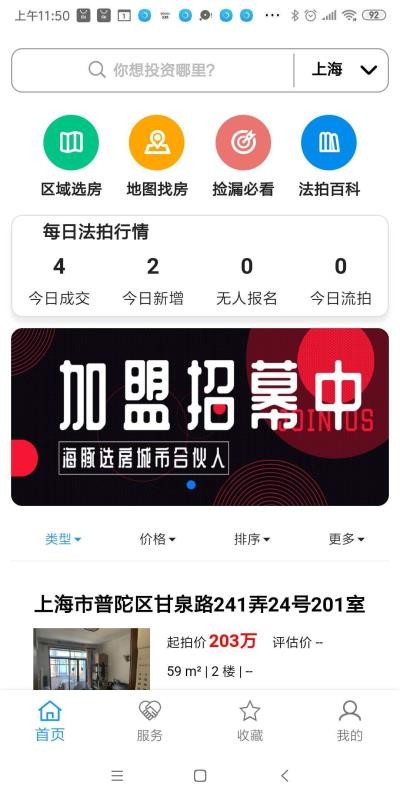 4、进入首页,能够清楚的看到各种房屋的拍卖信息,快速的使用