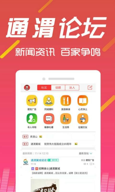 通渭翼城app是专为通渭当地用户提供的一款生活服务软件,这里能够为用户提供吃喝玩乐衣食住行的各种场所,还可以实时为您进行定位,并根据用户的位置为您推荐你附近的场所供您选择,可以更好的满足用户的生活需求;同时还为用户提供了同城头条新闻资讯,每天都会为您实时更新大量的新闻资讯,各种类型的新闻应有尽有,用户可以根据自己的需求在这里选择观看,从而更好的了解自己想要了解的内容;更为用户提供了贴心的外卖功能,你可以选择自己喜欢的美食进行下单,拥有专业的外卖员为你送货到家,让你足不出户就可以得到各种美食。