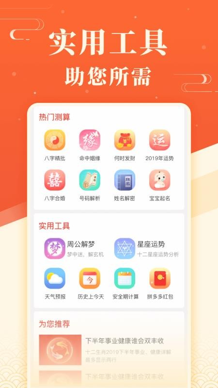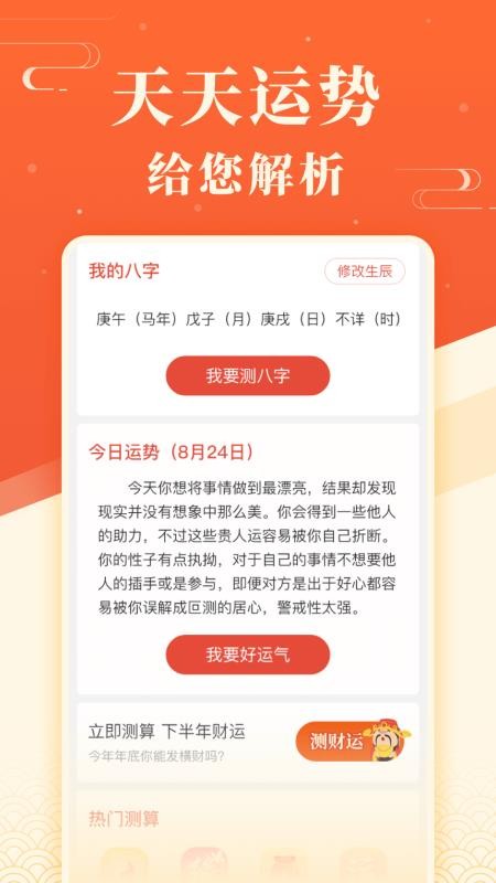 5、详细的个人运势查询,可以了解自己的财运、姻缘、今日运气等;