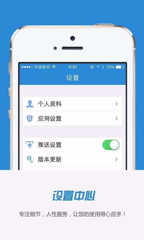 2、点击设置,选择个人资料、应用设置、推送设置等