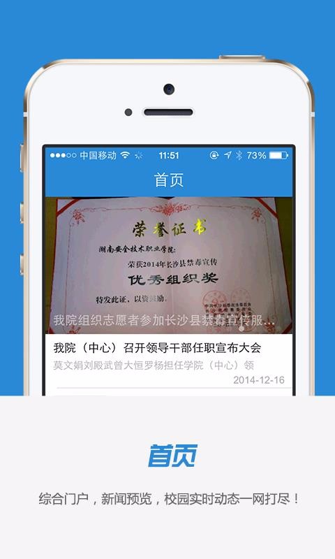 1、该软件的首页综合了各种资讯信息,新闻预览、校园动态等,进入即可查看到;