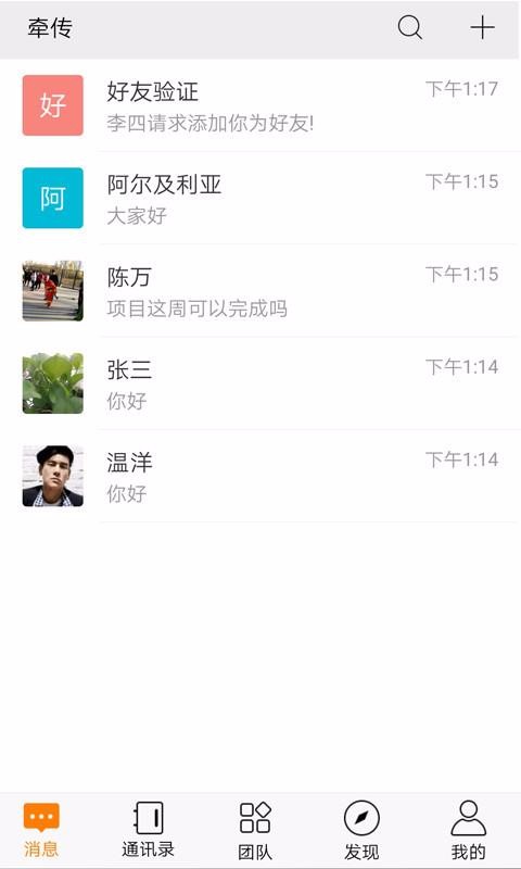 牵传是一个招工求职平台,同时可以在该平台中创建团队和项目,并直接寻找相关的人才邀请加入;可以在该平台中发现关于招工、找活、老乡、供应信息、求购信息、保险服务、法律援助等各种信息,选择相应的分区即可发布信息或查询该服务;用户登录该软件后,即可完成实名认证和完善个人名片,即可根据你的信息为你推送相符合的动态,也可以自行开启找活的模式,实时推送各种招工信息,也可以选择打开已工作,即可停止推送;添加好友或加入团队后,即可在通讯录中查看明细,选择用户即可开始聊天,也随时推送好友验证的消息。