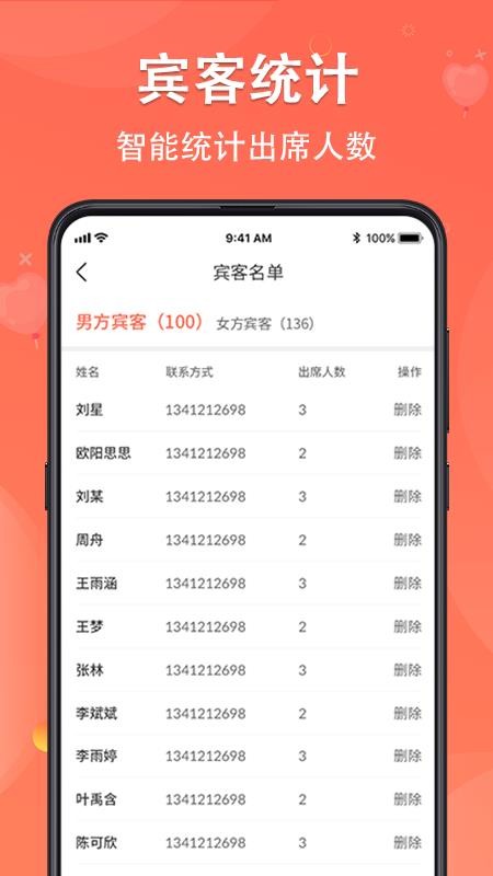 4、在这里,用户可以快速的进行宾客统计,智能统计出出席人数,方便用户安排;