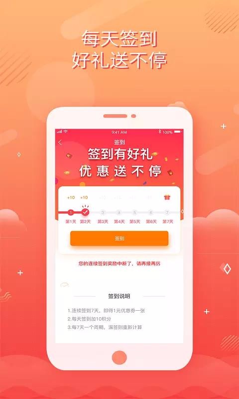 1、提供的签到的方式更加的方便,签到领取的奖励让你的服务更加的划算;