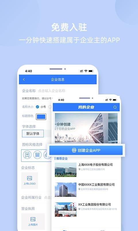 1、用户通过软件可以快速的创建企业app,填写企业信息后即可进行使用;