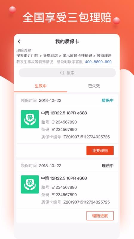 6、可以在线查看自己的质保卡,选择相应的信息进行查看之后选择理赔;