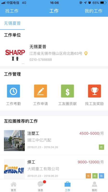 5、点击工作,能够更好的解决有的工作信息,更好的使用