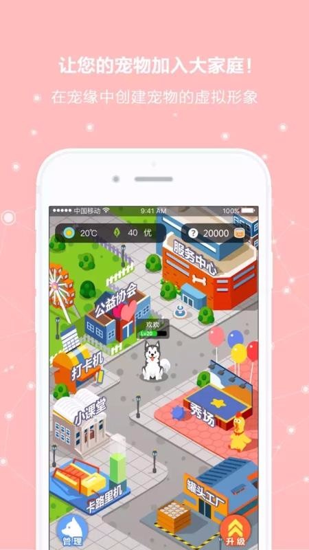 宠缘是一个宠物互动平台,可以在该平台中秀宠物,也可以查看其他人发布的宠物动态,并在评论区中进行互动;用户可以在该平台中创建宠物的虚拟形象,并在线玩游戏,提供的场所有公益协会、服务中心、秀场、卡路里机、罐头工厂等;在线即可与其他用户的宠物进行领地PK,偷取更多的罐头来赚取更多的领地面积,随时为用户统计累计用时、总里程、遛宠次数等数据,在比赛结束时,还可以在地图中查看为你推荐的宠友,选择宠友即可进行打招呼和聊天;这里也有宠缘集市,在线即可购买与宠物相关的商品,也可以兑换虚拟的商品。