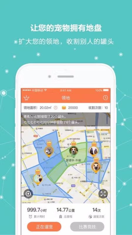 2、支持遛宠圈地,遛宠物获得更多的领地,并在领地中开发罐头;