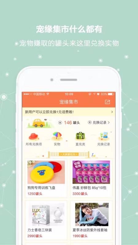 4、提供了宠缘集市,使用罐头即可兑换实体商品或虚拟商品;