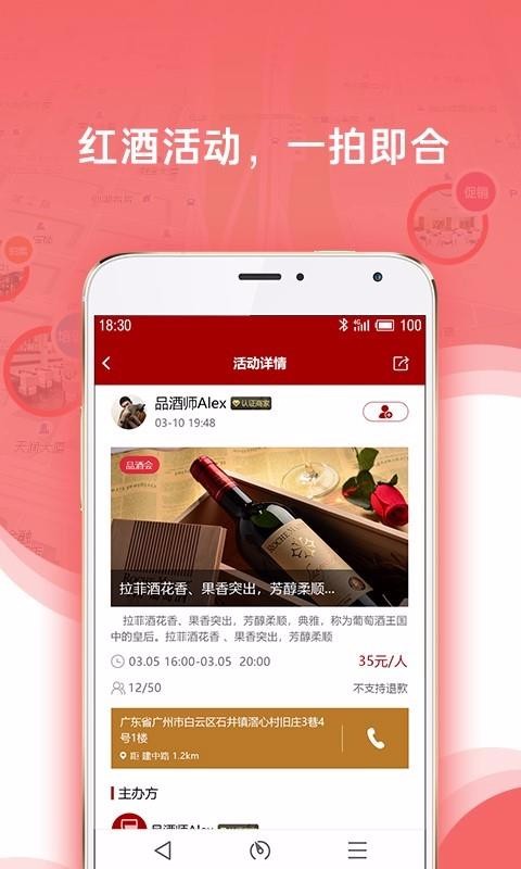 5、查看各种红酒品鉴活动,选择查看活动详情,直接的分享活动