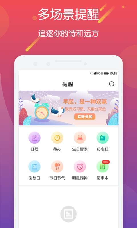 2、及时提醒用户,日程、生日、待办事项、节气等内容可以及时的提醒;
