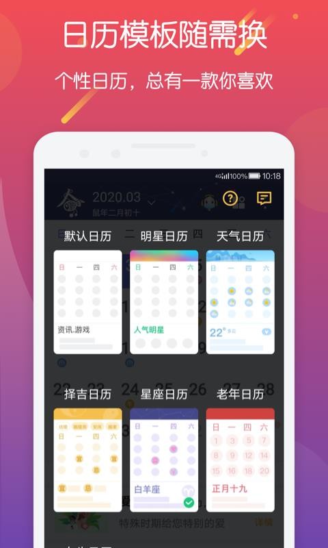 1、提供不同的日历模板,个性的模板随时切换使用,非常的方便;
