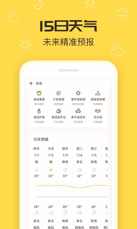 3、支持15天预报,提供了每天具体的天气数据;