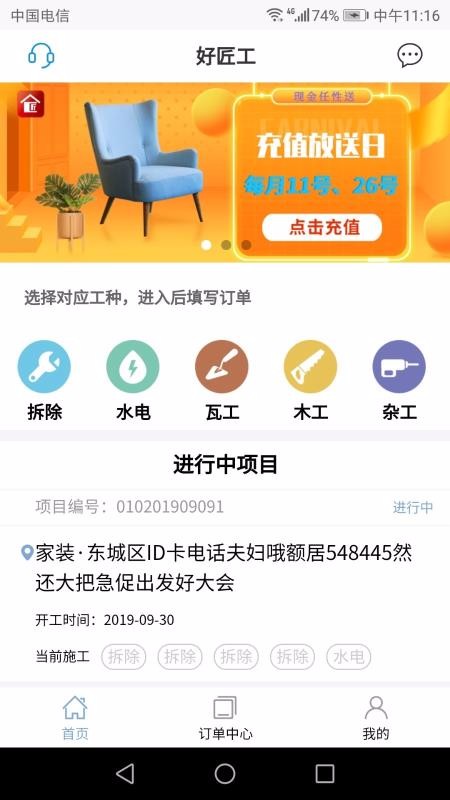 用户可发布装修信息,工人可以接装修工单;用户可以在线付款,也可线下付款