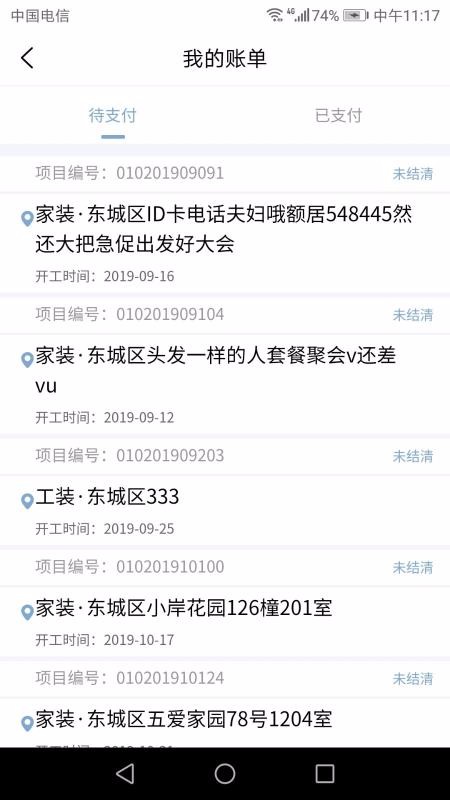 3、已支付的账单信息,让你知道已完成的项目信息,了解自己对项目的完成情况;