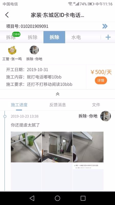4、施工进度显示,通过现场时能更的想照片了解施工的进度;