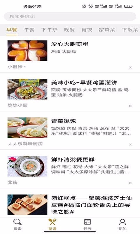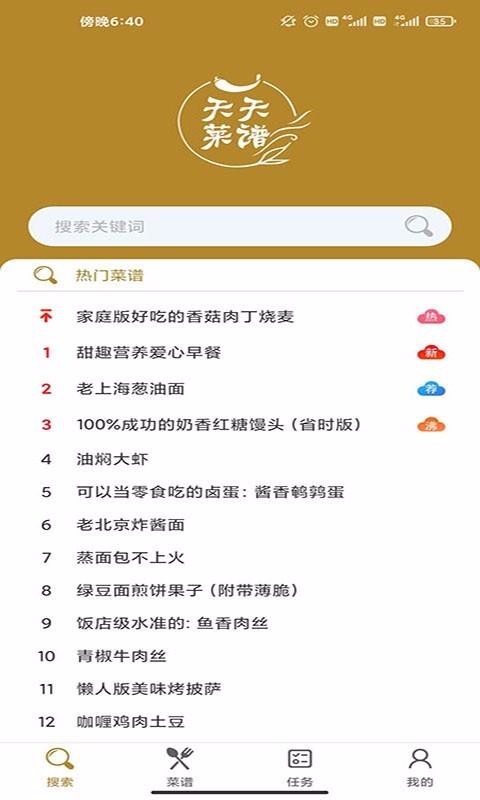 天天菜谱app是一款简单方便的做菜教学软件,用户能在线学习更多的菜品,提高自己的菜单量;在极简的界面显示下,让用户能更好的观看菜谱详情,有效提高你的烹饪能力;将菜谱按早、中、晚、等分类,让用户能更好的选择需要制作的菜品,为你的生活带去更好的体验;还有强大的搜索功能和热门菜品推荐,让你能学习更多的菜,提高自己的菜品学习能力;更有详细的厨师讲解,提高对菜品的食用效果的了解,更有营养分析为你带去更好的健康生活方式,食材清单和做菜 步骤都记录清楚,让你学做菜更轻松。